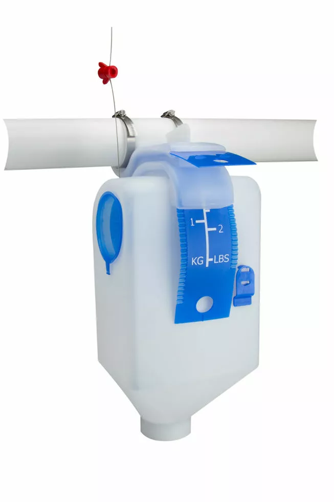 - Конструкція з відкритою верхньою частиною дозволяє встановлювати дозатор безпосередньо на кормолінії.