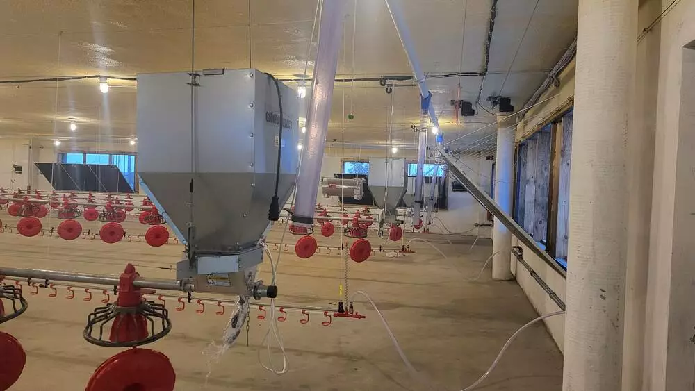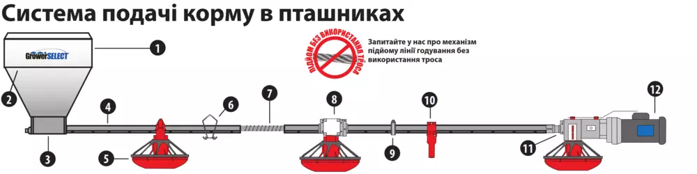Поперечна розпірка у верхній частині хопера забезпечує додаткову жорсткість та надійну точку кріплення опуска для подачі корму.