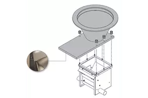 Сполучна воронка під кормовий бункер, з заслінкою, зовнішній діам. вертикального фланця - 440 мм, нерж.